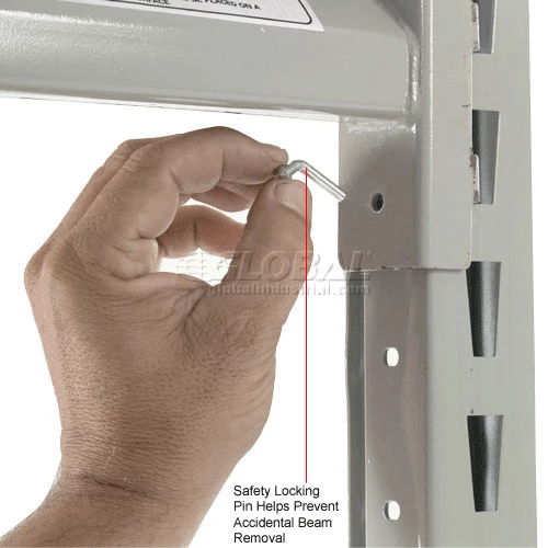 Add another level to your bulk rack for more storage space. Includes one pair of Z-form beams, wood decking and 6 deck supports. Beams are made with 3-1/2″H x 12 gauge Z-formed steel for extra strength. Features three large 1″ hooks on each end for positive connection to uprights. Wood deck is made from 5/8″ thick pre-cut high density particleboard with square edging. Deck supports provide added strength and support for greater capacity. Easily attaches to beams for tool-free installation. Gray powder coat finish.
