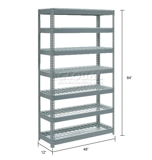 Expect top performance with rugged steel shelving that features super-strong roll-formed steel framing with positive interlocking beam-and-post connections for quick assembly. All shelf levels also include double-rivet support for added rigidity. This unit includes wire decking. Levels adjust at 1-1/2″ increments and permit 4-way access. 14-gauge steel uprights measure 2-1/4″ x 1-1/2″. Durable gray baked enamel.