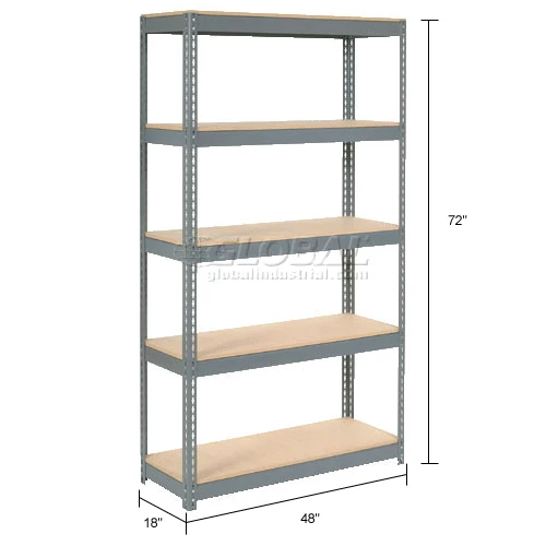 Expect top performance with rugged steel shelving that features super-strong roll-formed steel framing with positive interlocking beam-and-post connections for quick assembly. All shelf levels also include double-rivet support for added rigidity. This unit includes 5/8″ particleboard decking. Levels adjust at 1-1/2″ increments and permit 4-way access. 14-gauge steel uprights measure 2-1/4″ x 1-1/2″. Durable gray baked enamel.