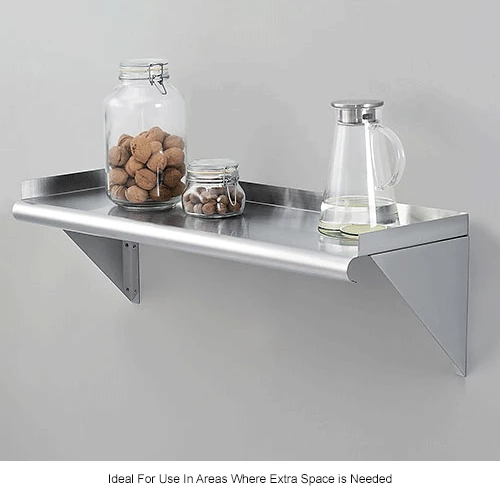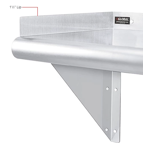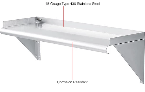 Global Industrial Wall Mount Shelf with 1-1/2″ Lip 18 Gauge 430 Stainless Steel 36″W x 12″D