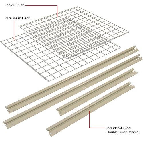 Add an additional level to your existing rack. Includes 4 beams and wire decking.