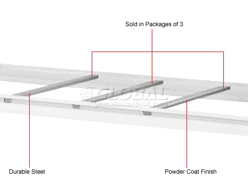 Use 3 per level for wood deck when used with 72″ and 96″ long beams on 36″ and 48″ deep uprights. Use 3 per level for wire deck of any dimensions. Sold in packages of 3.