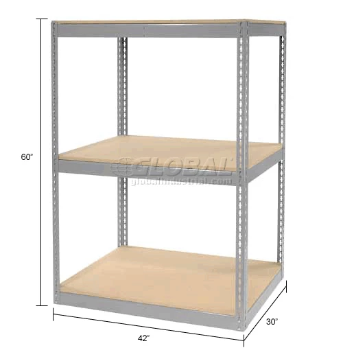 Global Industrial Extra Heavy Duty Shelving, Wood Deck, 4 Shelves, 48"Wx12"Dx60"H, Gray