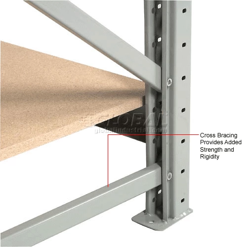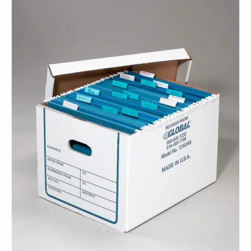 Heavy duty shelving with file boxes makes organized record storage affordable and convenient. High capacity steel racks, with up to 3800 lb. capacity per level, handle the biggest record storage needs. Made using boltless 12-gauge steel horizontal beams with 3-hook connector end plates that allow easy installation without tools. Beams adjust in seconds at 1-1/2″ increments. Uprights are 14-gauge steel. Rack is finished in gray powder coating. Rugged 200 test corrugated transfer file boxes protect and organize records for storage with double-thick front and back walls, large label area and hand holes for easy lifting and portability of stored records. Boxes fit securely on rugged 5/8″ thick particleboard decks. 18″D Unit stores 1 row of boxes. Easy assembly.