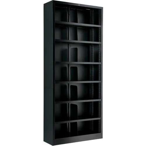 Interion By Global Industrial Interion® All Steel Bookcase 36" W x 12" D x 84" H Black 7 Openings