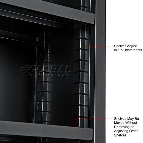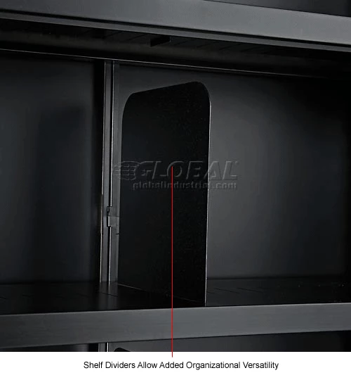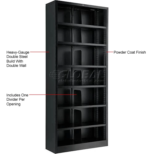 The Interion® By Global Industrial All Steel Bookcases offer the ultimate in flexibility and value. Heavy gauge steel, double wall bookcase is built for long lasting strength and durability. Shelves adjust easily in 1-1/4″ increments without removing or adjusting other shelves. Durable powder coat finish. Steel book shelves measure 36″W x 12″D. Weight capacity per shelf is 90 lbs. This unit comes with 7 dividers. Easy Assembly.