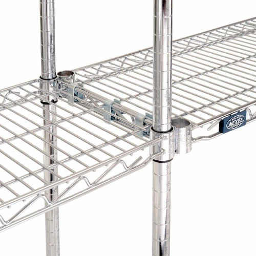 Add-On shelving units allow unit expansion to make the most of storage space. Includes 2 posts with leveling feet, 4 shelves, snap-on sleeves and S-hooks to join units. Chrome plated finish is attractive enough for retail display, but withstands warehouse conditions as well.