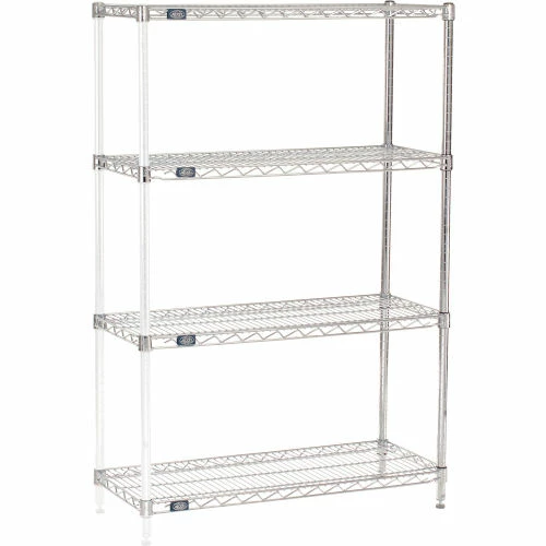 Nexel® Chrome, 4 Tier, Wire Shelving Add-On Unit, 42"W x 14"D x 54"H