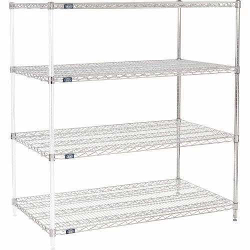 Nexel® Chrome, 4 Tier, Wire Shelving Add-On Unit, 48"W x 30"D x 63"H