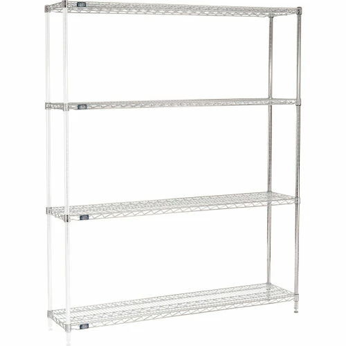 Add-On shelving units allow unit expansion to make the most of storage space. Includes 2 posts with leveling feet, 4 shelves, snap-on sleeves and S-hooks to join units. Chrome plated finish is attractive enough for retail display, but withstands warehouse conditions as well.