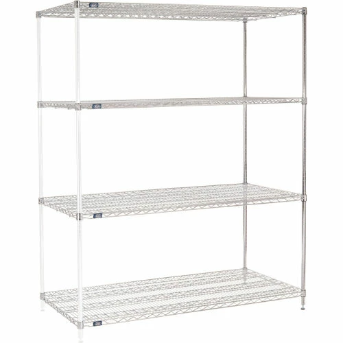 Nexel® Chrome, 4 Tier, Wire Shelving Add-On Unit, 72"W x 30"D x 86"H