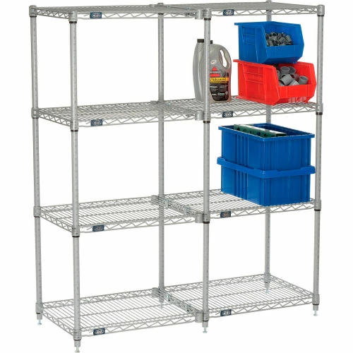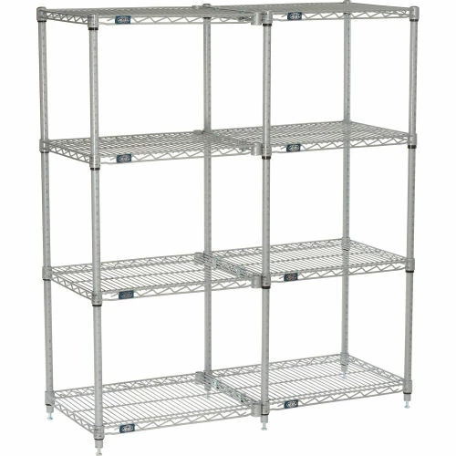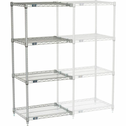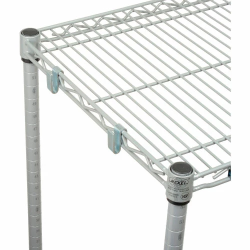Add-On shelving units allow unit expansion to make the most of storage space. Includes 2 posts with leveling feet, 4 shelves, snap-on sleeves and S-hooks to join units. Nexelate® is an attractive finish that consists of a Silver Epoxy powder-coat over a rust inhibiting undercoat. NSF approved for wet or dry use.