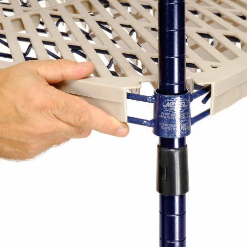 - Includes 4 posts, 4 shelves, and snap on sleeves
