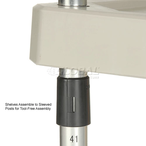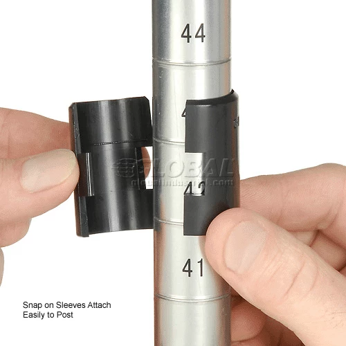 - Includes 4 posts, 4 shelves and snap on sleeves