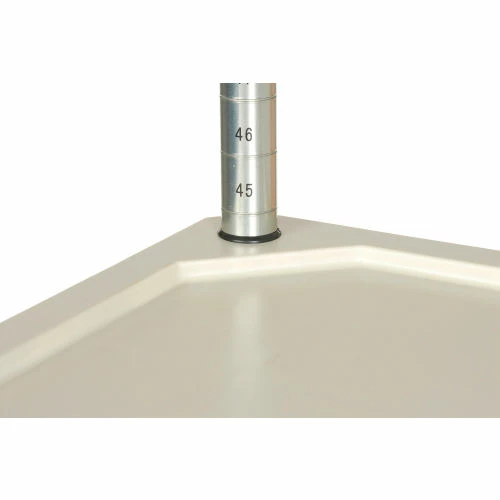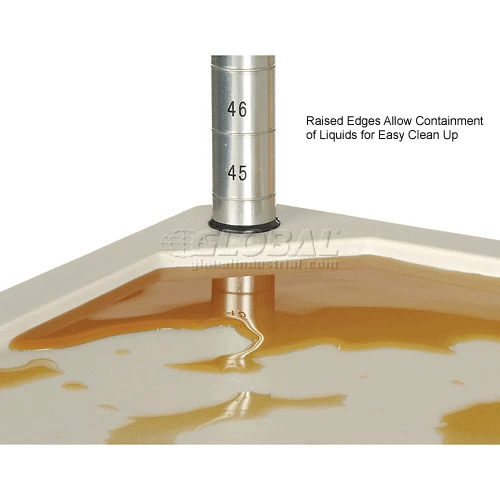 - Solid Plastic Shelves include a raised edge to prevent spills and adjust at 1″ increments