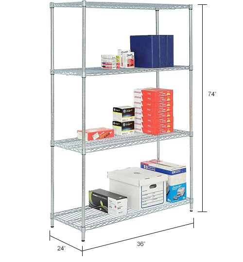 Nexel® Zinc Chromate, 4 Tier, Wire Shelving Starter Unit, 36"W x 24"D x 74"H