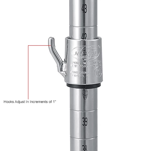 Customize your Wire Shelf Units by adding Collar Hooks. These Hooks can be inserted onto any Nexel Post and adjusted in increments of 1 inch. Sold in packages of 4 pcs.